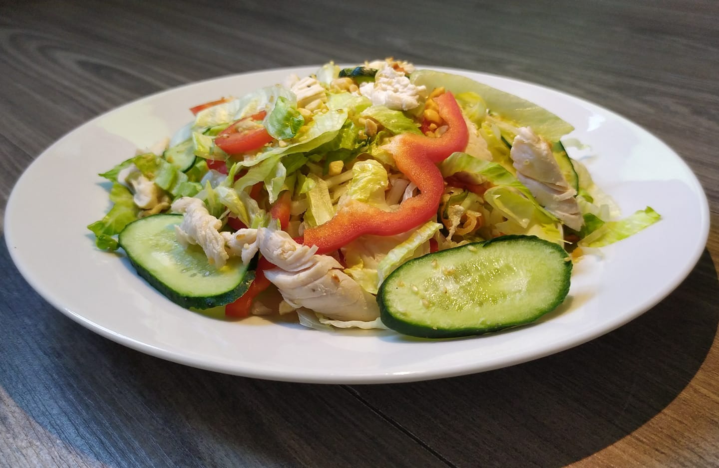 Głównymi składnikami zupy Pad Thai są makaron ryżowy, świeże warzywa, takie jak marchew, papryka, cebula i oraz soczyste kawałki kurczaka lub krewetek. Całość jest aromatyzowana przyprawami typowymi dla kuchni tajskiej, takimi jak sos sojowy, chili, czosnek i imbir, oraz delikatnymi nutami kwasu tamaryndowego. Zupa Pad Thai to prawdziwy festiwal smaków, gdzie słodycz, kwasowość, pikantność i chrupkość spotykają się w harmonijnym połączeniu. Podawana z kawałkami świeżej limonki, posiekaną kolendrą i orzeszkami ziemnymi. Ta zupa nie tylko cieszy podniebienie, ale także kusi zmysły swoim aromatem.