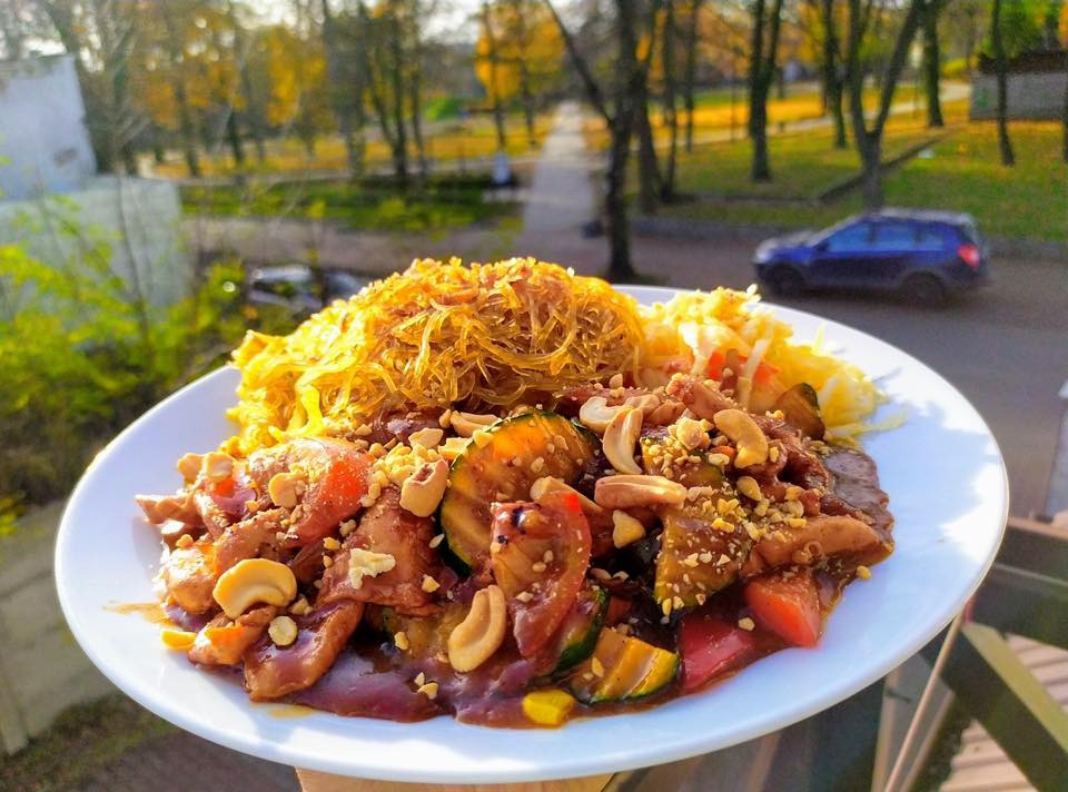 Pad Thai z krewetkami to klasyczne danie tajskie, które zachwyca smakiem i aromatem. To połączenie delikatnie ugotowanych krewetek, świeżych warzyw, jajek, orzechów ziemnych i makaronu ryżowego, które podane są z pikantnym sosem tamaryndowym. To danie nie tylko smakuje wyśmienicie, ale także rozbudza zmysły swoim intensywnym połączeniem smaków: słodycz tamaryndu, lekkość ryżowych klusek, chrupkość orzechów ziemnych i soczystość krewetek. Pad Thai z krewetkami to prawdziwa uczta dla podniebienia, która zaprasza Cię do odkrycia bogactwa tajskiej kuchni.